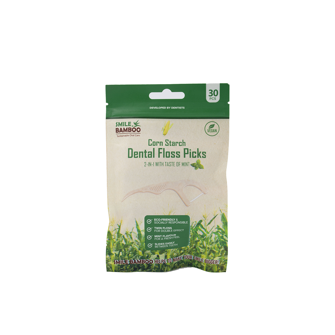 Οδοντικό νήμα σε διχάλα από καλαμπόκι με άρωμα μέντα vegan 30τμχ Smile Bamboo.