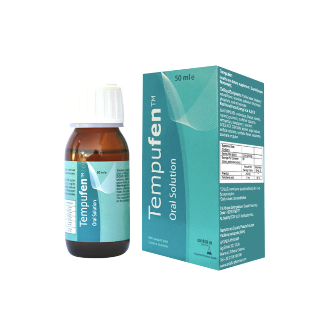Το Tempufen είναι πόσιμο διάλυμα που ανακουφίζει απο συμπτώματα αυπνίας, έντασης, κούρασης, στρες και άγχους. Δεν περιέχει οινόπνευμα, ζάχαρη, λακτόζη τεχνικές χρωστικές, συνθετικά αρώματα, ασπαρτάμη, σακχαρίνη ή γλουτένη.