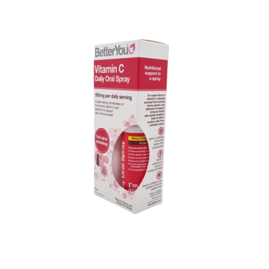 Το στοματικό σπρέι βιταμίνης C της BetterYou παρέχει 120 mg βέλτιστα απορροφήσιμης βιταμίνης C για την καθημερινή υποστήριξη του ανοσοποιητικού σας συστήματος και την προστασία των κυττάρων από το οξειδωτικό στρες.